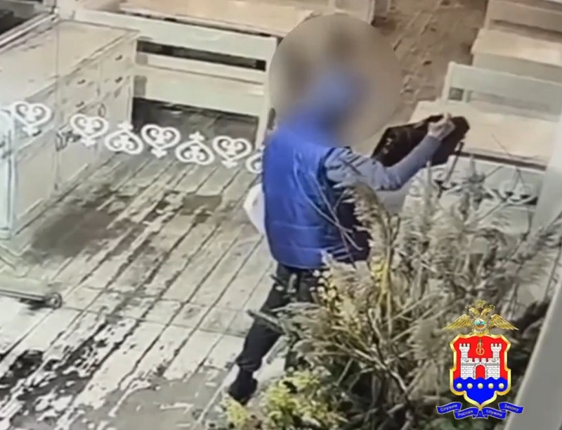 Мимо проходил 36‑летний уголовник в синей куртке-жилетке. Он обратил внимание на портфель и с натянутым на голову капюшоном зашёл на террасу. Рецидивист принялся крутить сумку в руках, открыл её, заглянул внутрь и уволок с собой.