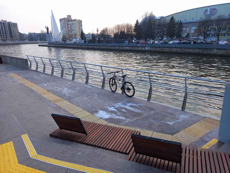 Как сообщил портал «Новый Калининград», глава администрации города Елена Дятлова пообещала ликвидировать парковку со стороны улицы Виктора Гюго. Сейчас рабочие перекладывают плитку у Философского моста и памятника Пионерам океанического лова, а позже эти два участка соединят широким променадом с велодорожкой.