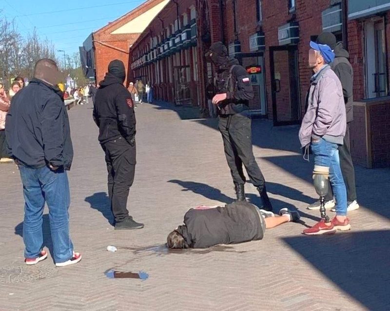 Объект всеобщего порицания каким-то образом оказался на улице. Работники ЧОП попытались утихомирить буяна. Внезапно гражданин получил сокрушительный удар — по версии из соцсетей, от охранников группы быстрого реагирования. Пострадавший потерял сознание, рухнул на тротуар, из головы потекла кровь. На улицу высыпали работники соседних заведений. В пабликах сообщили о конвульсиях раненого.