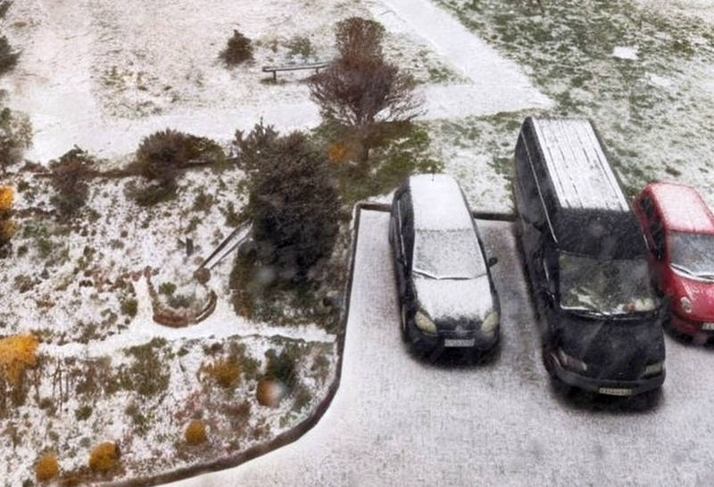 Ледяная крупа выпала во многих районах, а в некоторых городах, например, в Советске даже подзадержалась на поверхностях, дав возможность сделать фотографии.