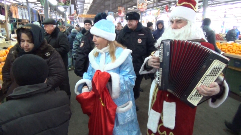 В пресс-службе регионального управления полиции уточнили, что рейд решено было провести в необычной форме. На рынок вместе с сотрудниками ППС, участковыми и кинологами прибыли полицейские в костюмах Деда Мороза и Снегурочки, которые поздравляли посетителей рынка с наступающим праздником и одаривали детей подарками.