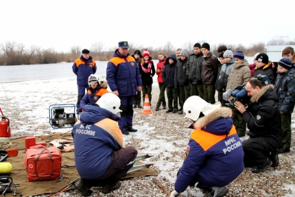 Подобные мероприятия, как и Дни открытых дверей, проходят по случаю 25-летия со дня образования МЧС России во всех поисково-спасательных подразделениях и пожарных частях Калининграда и области.На базе полесского подразделения подрастающему поколению рассказали об опасности первого льда и о правилах оказания помощи человеку, провалившемуся под лед.