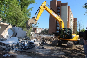 Сегодня, 18 мая, были снесены три последних строения, из-за которых ввод садика в эксплуатацию задерживался с марта 2015 года.Детсад на 166 детей практически готов, игровые площадки и прилегающая территория благоустроены. "До сих пор нам мешали три гаража. Из-за одного из них нельзя было оборудовать котельную, провести инженерные и тепловые сети. Без них садик не ввести в эксплуатацию. И часть работ мы можем закончить, только подведя отопление в здание", - пояснил начальник участка строительной компании "Монолит" Владимир Сохончук.