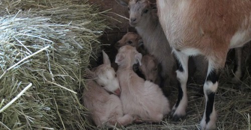 Четыре самца и одна самочка появились на свет у трехлетней козы Майи неделю назад.