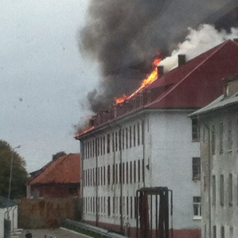 В пресс-службе регионального управления МЧС корреспонденту Русского Запада сообщили, что сообщение о пожаре поступило в 12:19 по калининградскому времени. На месте происшествия работают 3 пожарных расчета Главного управления МЧС по Калининградской области и пожарные Балтфлота. По данным пресс-службы МЧС, пострадавших нет. Огнем охвачена примерно половина кровли здания, которое находится на территории воинской части 14020.