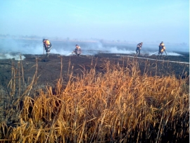 В понедельник, 2 ноября, продолжаются работы по ликвидации очагового тления земель сельскохозяйственного назначения в районе поселка Светлое на территории Гурьевского городского округа.