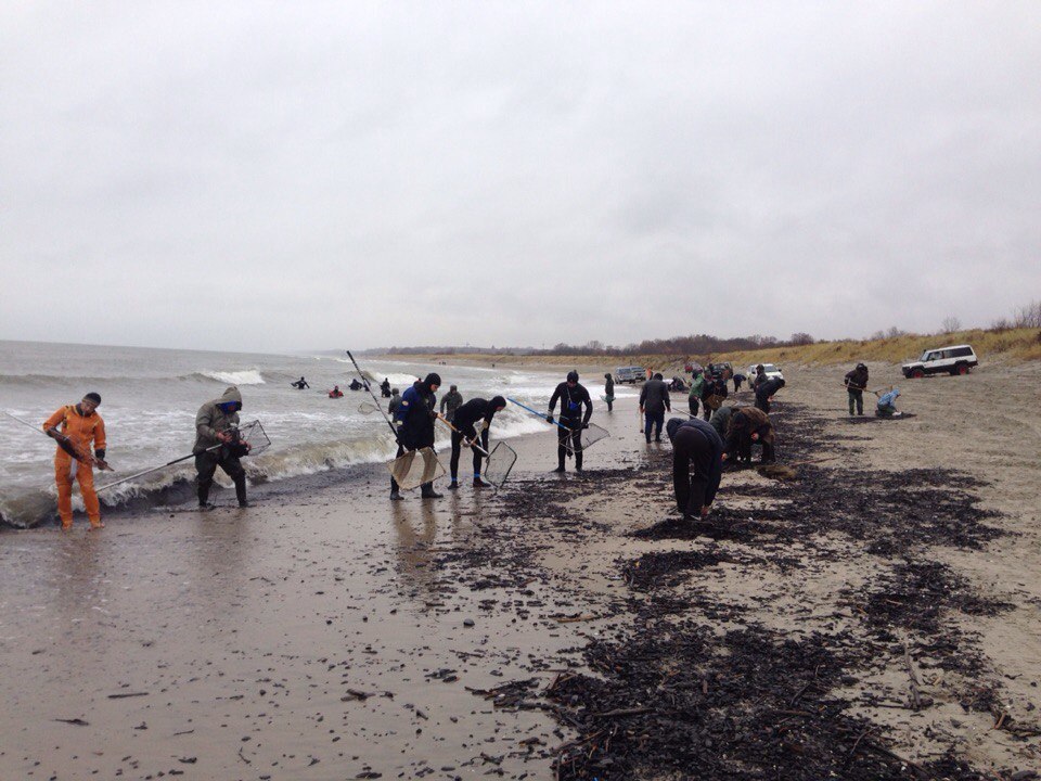 Калининградцы занимаются поиском и ловлей янтаря после урагана, который пронесся над регионом в минувшее воскресенье, 8 ноября.