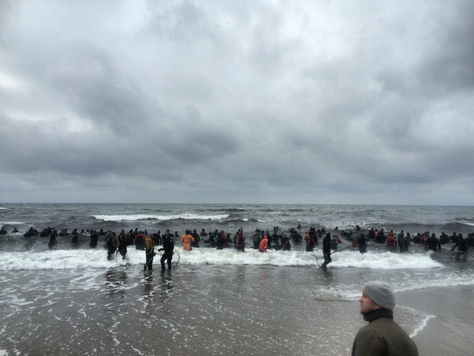 В минувшие выходные сотни калининградцев в гидрокостюмах и с сачками в руках залезли в неспокойное море.