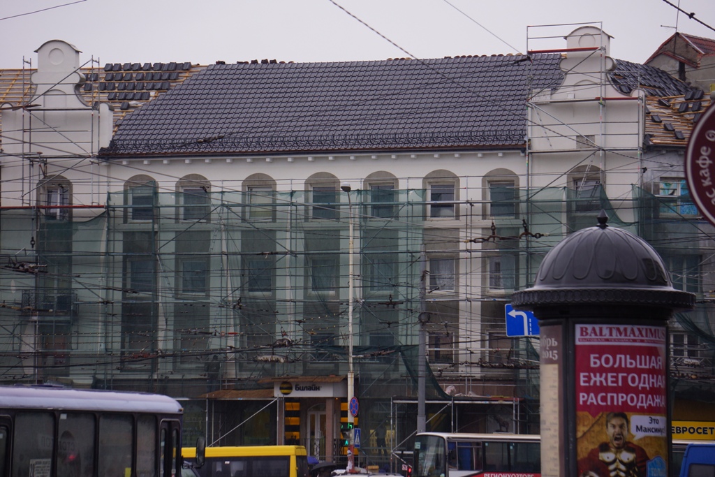 Сегодня, 2 декабря, подрядчик заверил министра, что кровельные работы будут завершены к 10 декабря. По его словам, завершить работы ранее помешали непогода и сложность самого технологического процесса. Дом на улице Черняховского состоял из нескольких отдельных объектов разных этажей со своей крышей. По завершении работ на доме появится единая кровля, выполненная в утверждённом стиле.