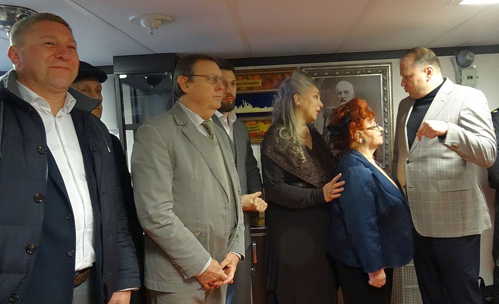 На СК "Адмирал Григорович" подняли Андреевский флаг. Как сообщает правительство Калининградской области, кроме официальных лиц правительства в церемонии участвовали внучка и правнуки адмирала Ивана Григоровича.