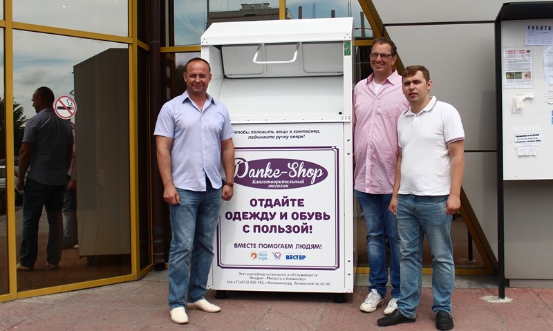 На торжественном открытии присутствовали представители от торговой сети «Вестер», магазина Danke Shop, а так же идейный вдохновитель проекта Ульрих Мюллер. «Мы обращаемся к калининградцам и приглашаем активно участвовать в сборе вещей для нуждающихся, не выбрасывать свои вещи, а приносить сюда. Эти вещи пойдут на благое дело и помогут тем людям, которые сейчас оказались в затруднительном положении в связи с обстановкой в стране. Пожалуйста, приходите и не будьте равнодушными!» - призвал заместитель генерального директора торговой сети «Вестер» Геннадий Абрамов.