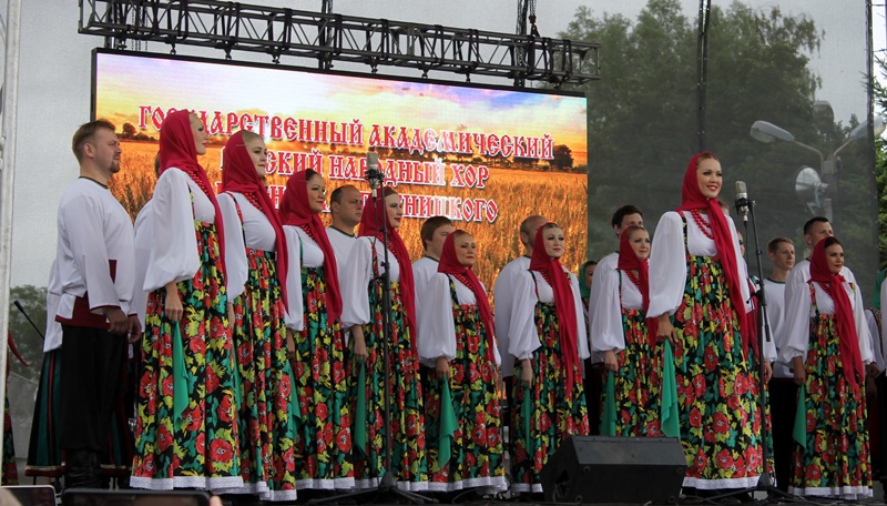 В субботу, 9 июля 2016 года, десятки калининградцев и гостей города пришли на площадь Победы послушать концерт Государственного академического русского народного хора им. М.Е. Пятницкого.