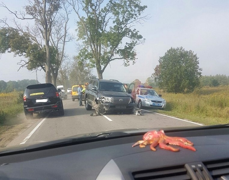 Около 10:00 в понедельник, 12 сентября 2016 года, на Балтийской трассе под Приморском произошло ДТП с участием двух автомобилей и мотоцикла. Об этом сообщают участники Сообщества автомобилистов Калининграда и области.