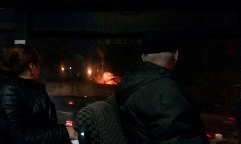 Так выглядело начало пожара со стороны въезда на Второй эстакадный мост