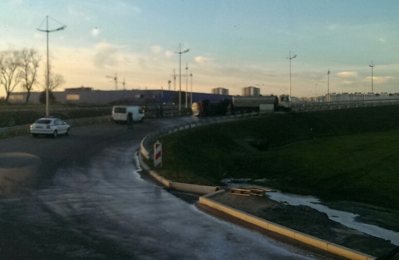 17 октября 2016 года на Берлинском мосту в Калининграде перевернулся молоковоз. Об этом сообщают очевидцы – участники Сообщества автомобилистов Калининграда и области.