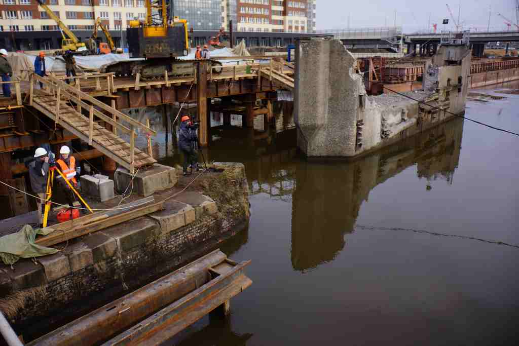 несколько причин: непредвиденные работы в связи с полостями, внезапно обнаруженными в демонтируемых опорах, проволочки с выносом труб “Калинингратеплосети”, а так же экспертиза правительственных корректировок проекта. Однако, первой неожиданностью для подрядчика стала