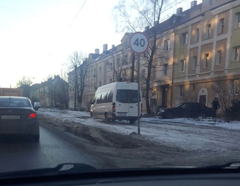 По фото видно, что водитель маршрутки нарушил не один пункт Правил дорожного движения, игнорируя даже дорожный знак «Ограничение максимальной скорости» с цифрой «40».