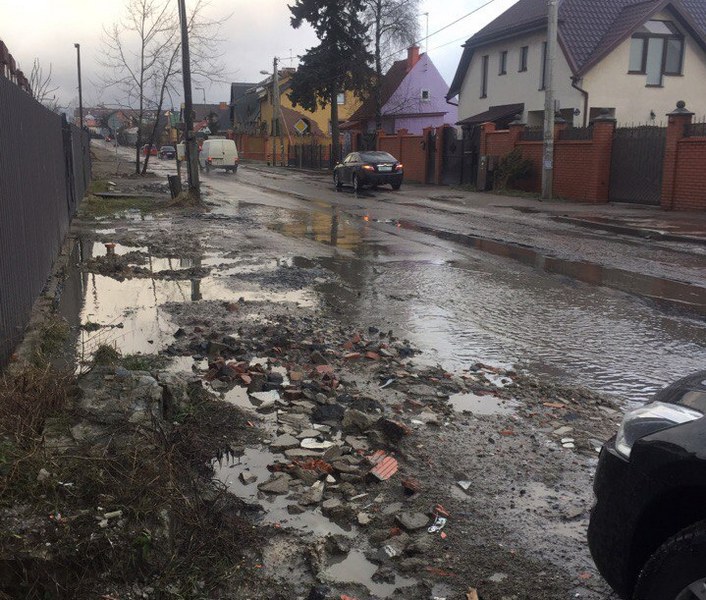 Накануне, 2 марта 2017 года, в ямах на этой улице застряла детская коляска.