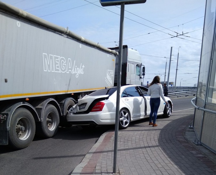 В результате аварии автомобиль «Мерседес» под управлением иностранного гостя Калининградской области оказался «поджат» грузовым автомобилем «ДАФ».
