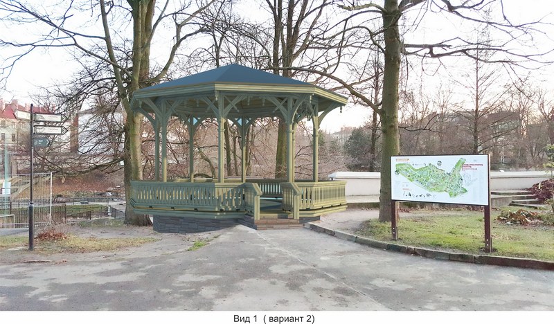 Исторический объект был построен в зоопарке Кёнигсберга в начале ХХ века и располагался на том месте, где сейчас находится верхняя смотровая площадка вольера африканских львов. К сожалению, до наших дней сохранилось лишь его бетонное основание, так что «Читальный павильон» практически полностью придется воссоздавать на основе архивных фотографий.