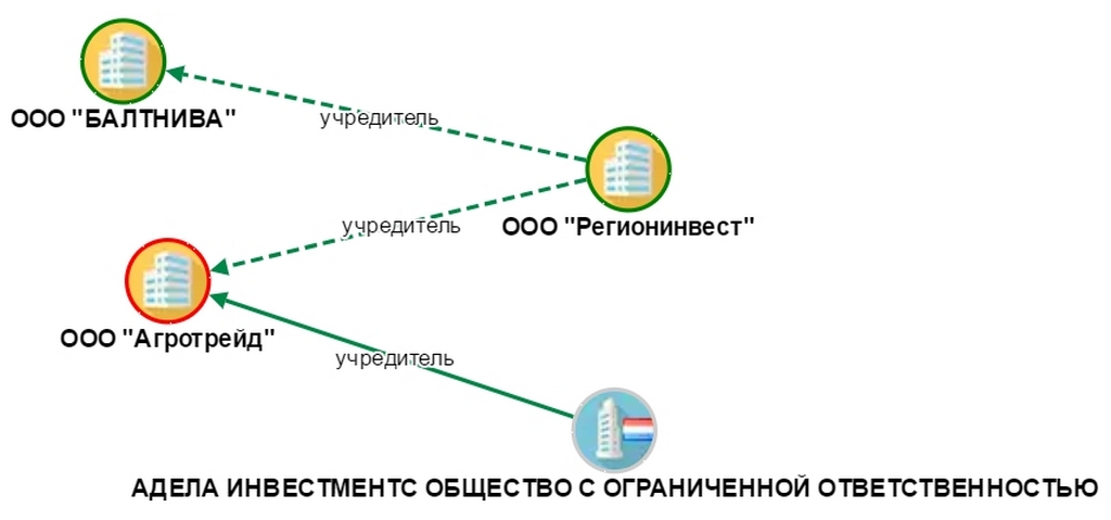 ООО «Адела Инвестменс», Люксембург (99,99%) -> ООО «Гарант Капитал» (100%) -> ООО «Банковские технологии» (99,99%) - > ООО «Балтнива»