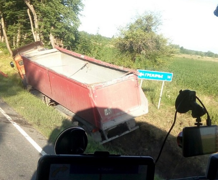 27 июня 2017 года около шести утра на трассе Советск – Талпаки в придорожный кювет улетел грузовик. Об этом сообщает очевидец – участник Сообщества автомобилистов Калининграда и области.