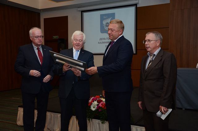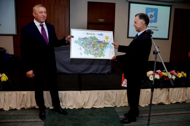 Глава Калининграда Александр Ярошук принимает презент города-побратима Каунаса