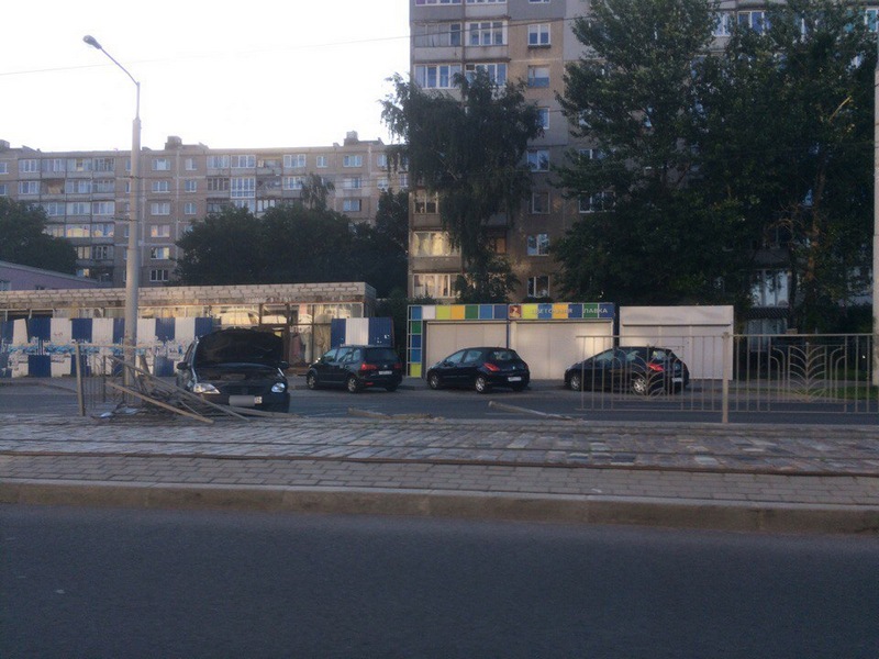 Около шести утра 14 июля 2017 года на ул. 9 Апреля в Калининграде автомобиль «Рено Логан» снес забор, ограждающий трамвайные пути. Об этом сообщают участники Сообщества «Право руля».