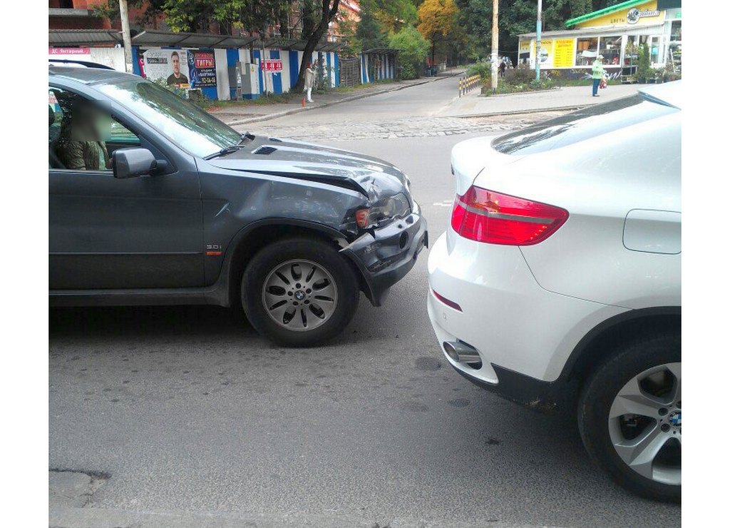 Как сообщают в социальной сети, значительные повреждения получил автомобиль модели X5, догнавший X6, который практически не пострадал. Происшествие произошло около 12 часов дня.