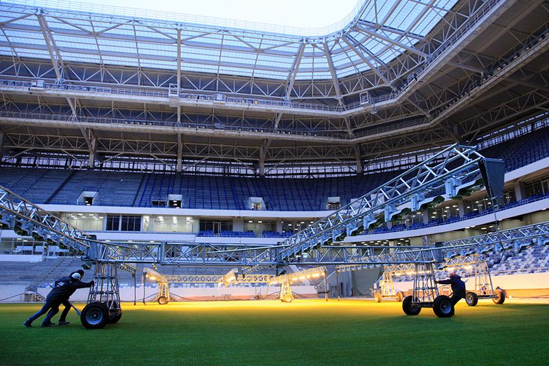 На калининградском стадионе к ЧМ-2018 завершился финальный этап подготовки футбольного поля – прошивка газона. Об этом сообщает генподрядчик строительства стадиона компания Crocus Group.