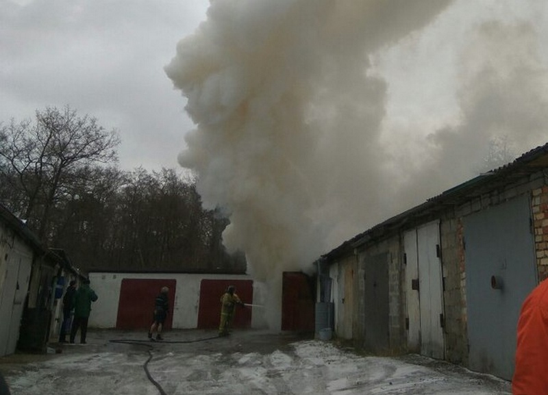 В результате огонь уничтожил гараж и находящийся в нем автомобиль. О пострадавших не сообщается. На месте работают сотрудники МЧС.