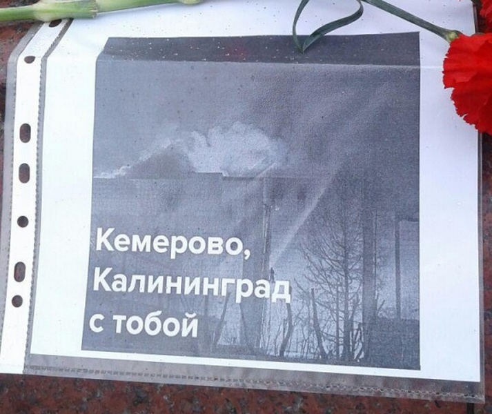 В понедельник, 26 марта, в центре Калининграда возник стихийный мемориал: горожане несут свечи, цветы и игрушки к Триумфальной колонне на площади Победы в память о погибших на пожаре в Кемерово.