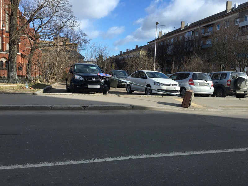 6 апреля 2018 года на ул. Б. Хмельницкого в Калининграде дорожный знак «Остановка запрещена» с табличкой «Работает эвакуатор» упала на автомобиль «Хонда». Об этом сообщают очевидцы – участники Сообщества автомобилистов Калининграда и области.