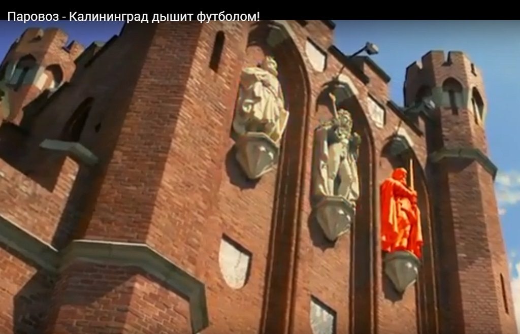 Калининградская группа “Паровоз” выложила клип на свою новую композицию в Youtube. Гимн местной серии игр ЧМ-2018 сыгран в стиле ska, но без слов. Его иллюстрирует видео-история о путешествии футбольного мяча по столице Калининградской области: первый пас дал человек, который залез на крышу Дома Советов, мяч поймали в жёлтое пластиковое ведро, а затем главный атрибут игры оказался у детей в арке калининградского двора и так далее.