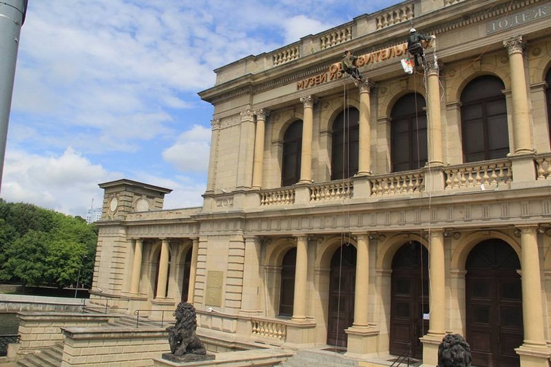 "Монтаж еще идет. Буквы крепят не отдельно, а каждое слово целиком. На фасаде также появятся баннеры с информацией о постоянных выставках Музея", - рассказали Русскому Западу в пресс-службе Музея изобразительных искусств.