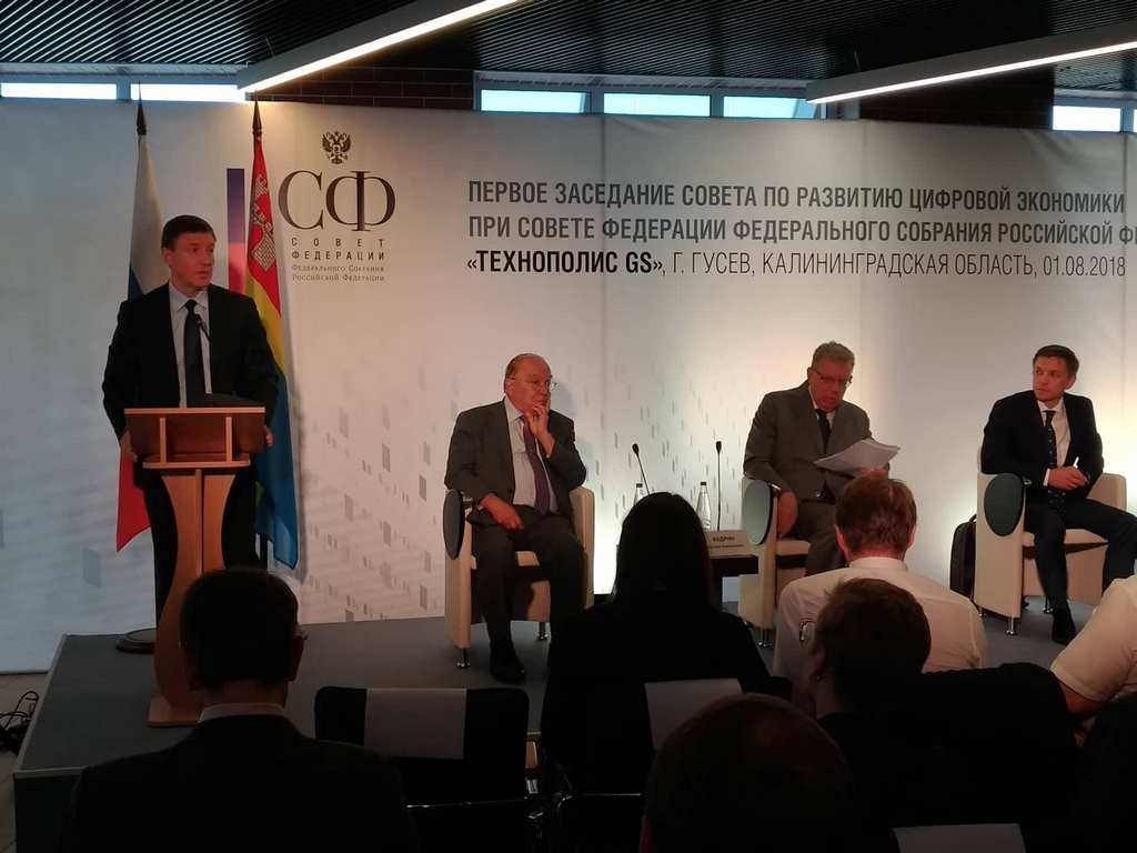 В Гусеве Калининградской области сегодня, 1 августа 2018 года, проходит 1-е заседание Совета по развитию цифровой экономики при Совете Федерации РФ. Его тема - "Развитие цифровой экономики в Российской Федерации: приоритеты и перспективы".