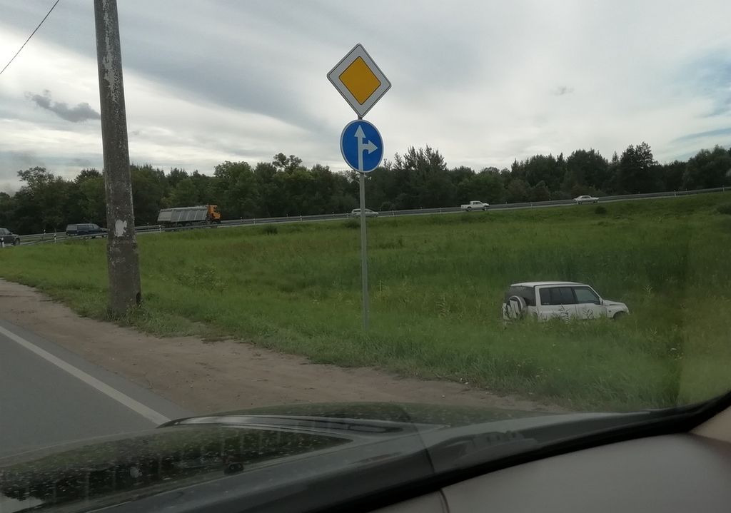 На выезде из Калининграда джип вылетел в кювет. 27 августа 2018 года фото с места происшествия появилось в группе “Сообщество автомобилистов Калининграда и области” в социальной сети “Вконтакте”.
