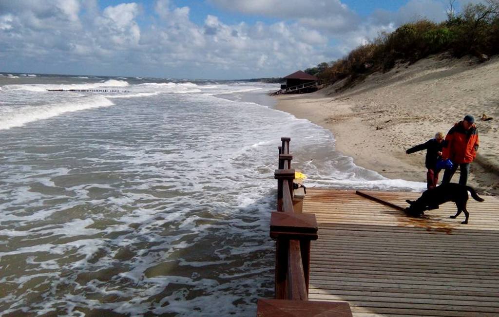Из-за первых осенних штормов Зеленоградск лишился пляжа. Александра Королёва выложила фото, на которых морская вода обнажила гальку и скрыла сушу. Балтика вплотную подступила к деревянному променаду у кафе на авандюне. По мнению эксперта, сложилась угрожающая ситуация.