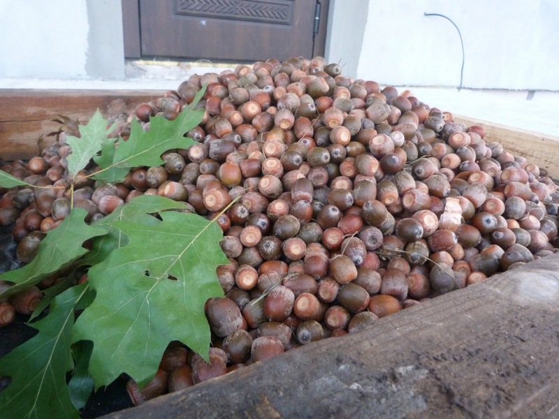 Часть желудей красного дуба уже собрана, высадят их в грунт после прорастания.