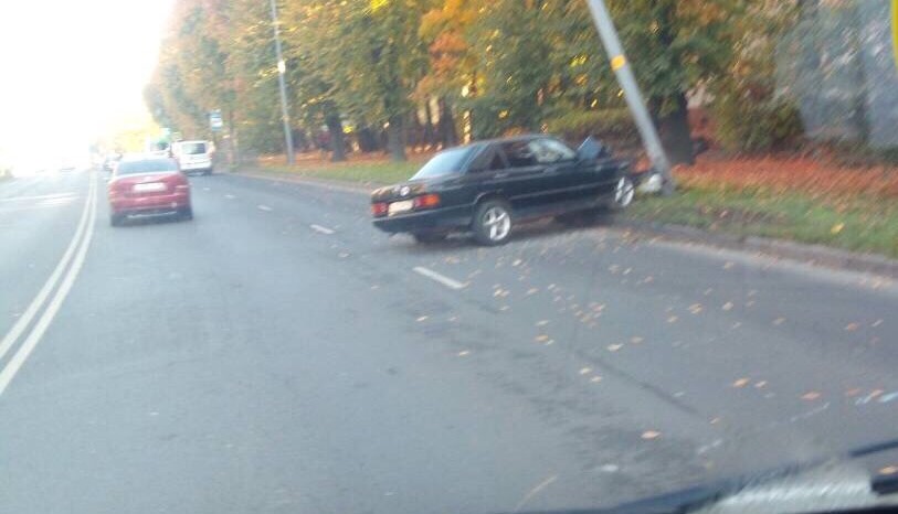 Другая нелепая авария с BMW произошла утром в воскресенье, на улице Александра Невского. Водитель автомобиля не справился с управлением. Машина врезалась с придорожный фонарь уличного освещения. Судя по фото, удар был такой силы, что опора накренилась и зависла над проезжей частью под углом на 60-70 градусов.