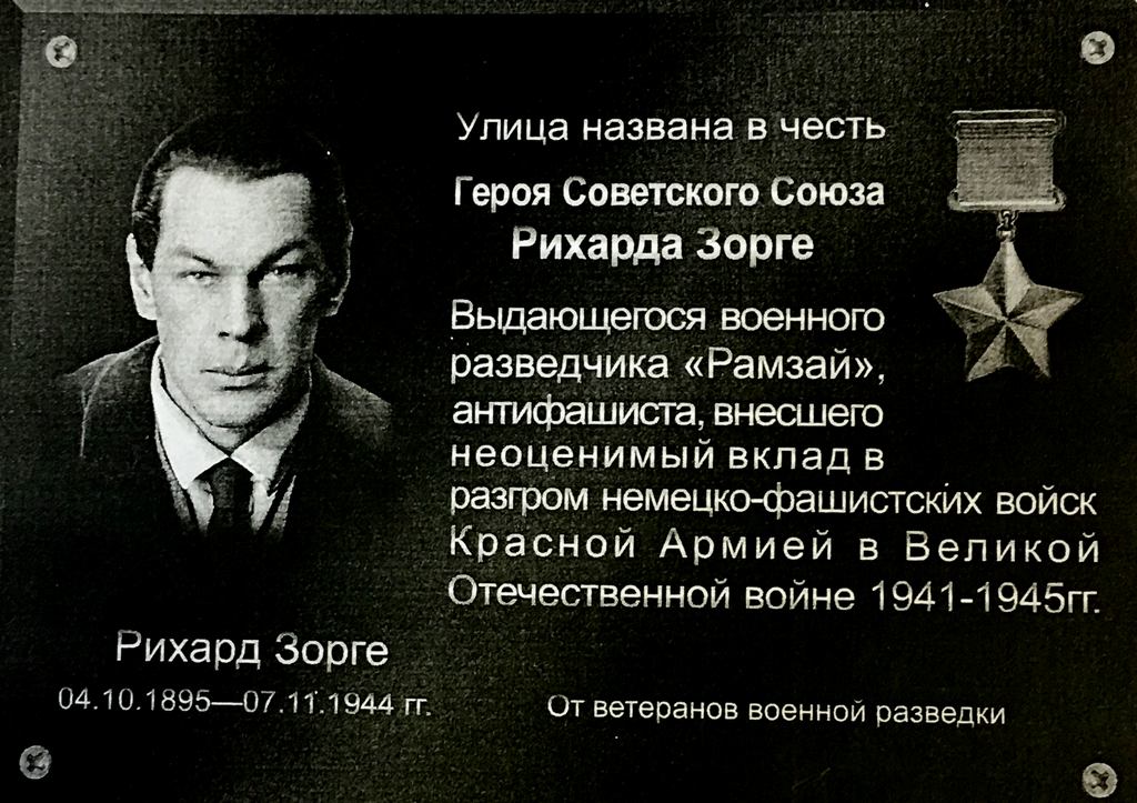 “В ещё несуществующем микрорайоне посёлка Октябрьский города Калининграда одна из улиц была названа именем Рихарда Зорге, - продолжили в Союзе ветеранов военной разведки. - С завершением строительства первого дома на этой улице принято решение установить на нём мемориальную доску. Рихард Зорге – символ разведки, мы живём сегодня благодаря тем данным, которые им были добыты и способствовали разгрому гитлеровцев”.