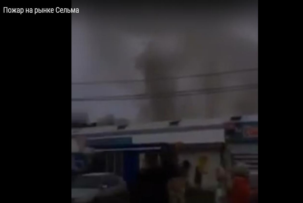 Очевидцы пожара на рынке Сельма выложили в сеть видео с места происшествия.
