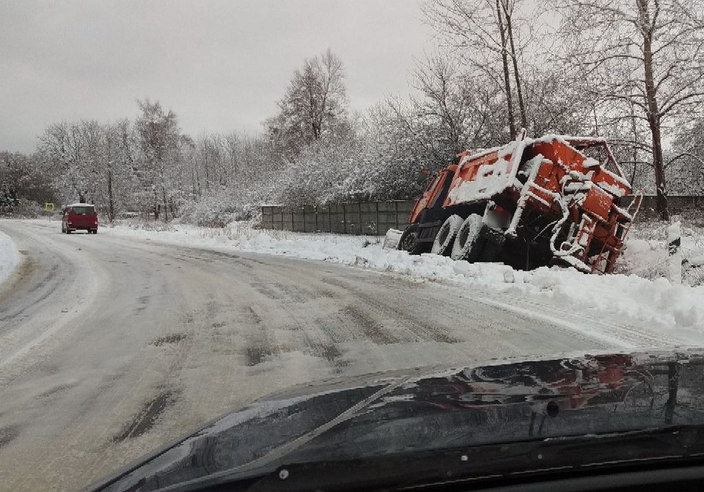 Грузовик вылетел с трассы и «прилег» в кювете. По предварительным данным, пострадавших нет.