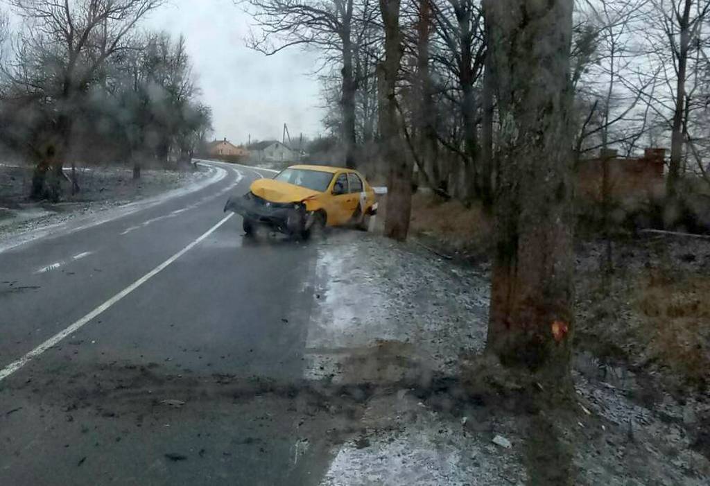 Как рассказал «Русскому Западу» очевидец, машину такси модели «Рено Логан» закрутило на скользкой дороге и ударило об дерево передним бампером. Таксист не смог покинуть машину из-за болей в шее.