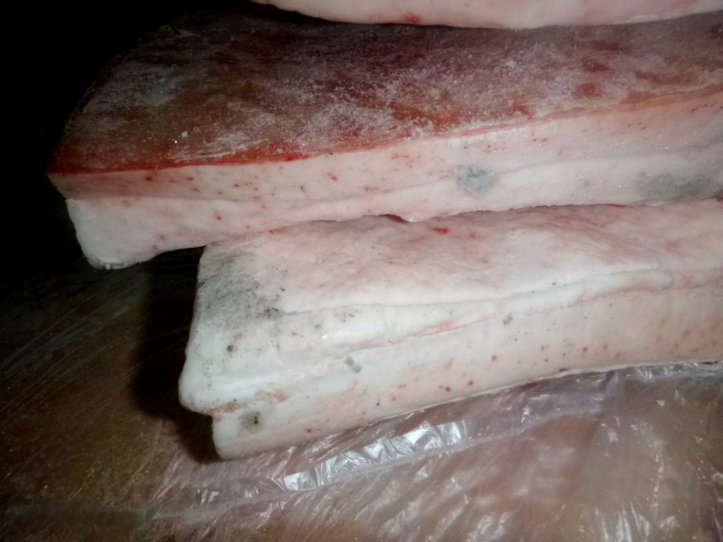 - а водитель «Фольксвагена» не стал прятать 143 куса свиного сала весом почти 1 200 кг – продукты лежали прямо на полу, сиденьях транспортного средства в 11 дорожных сумках и навалом.