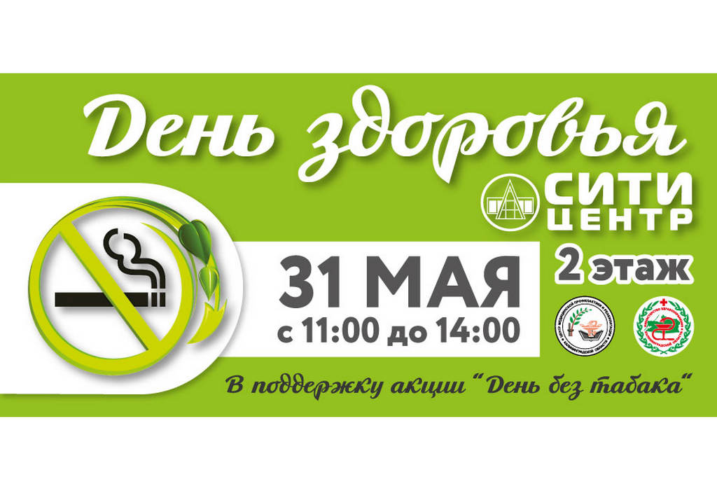 ГБУЗ «Центр медицинской профилактики и реабилитации Калининградской области» совместно с Торговым центром «Сити» проведут в пятницу, 31 мая 2019 года, День Здоровья, приуроченный к «Всемирному дню без табака».