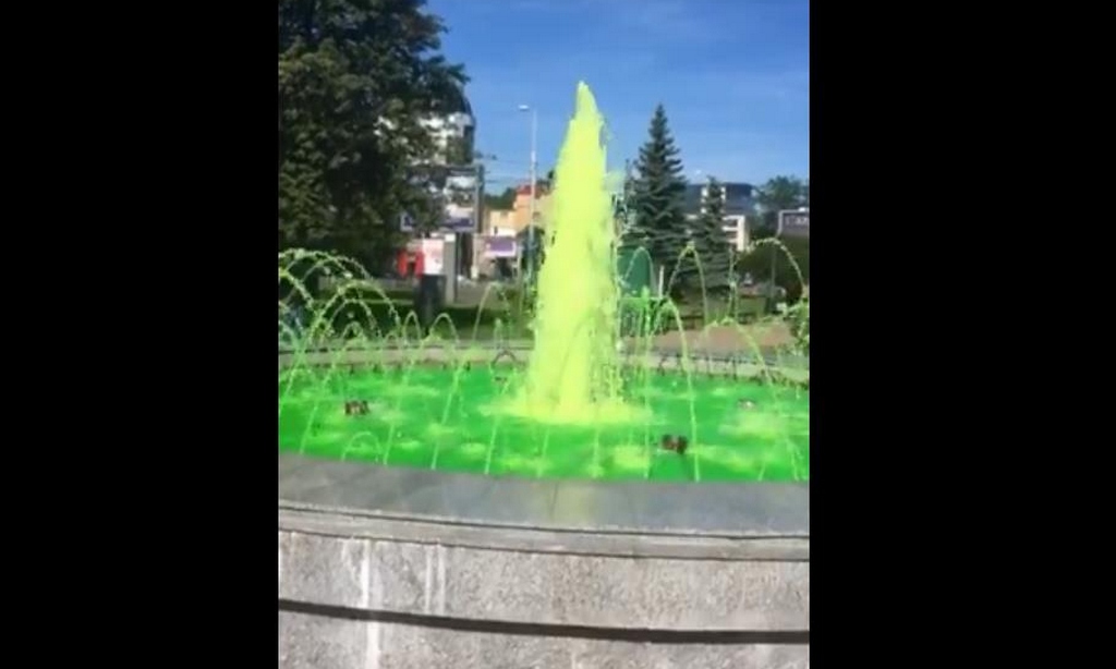 Из-за этого вмешательства вода в фонтане окрасилась в ядовито-зеленый цвет.