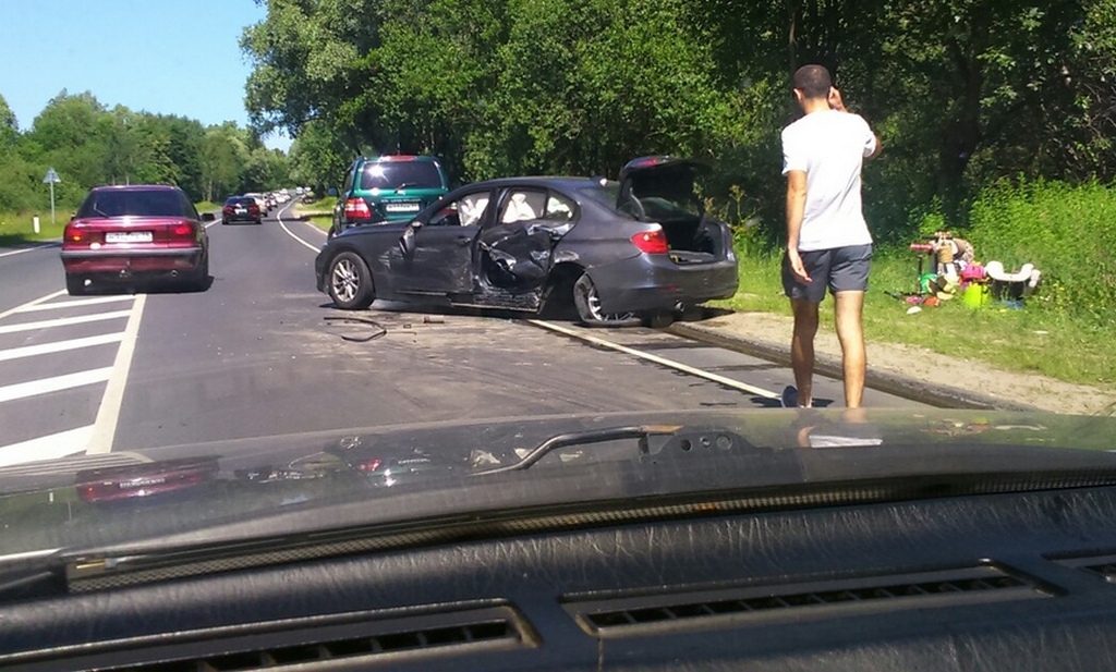 Как раз около Чкаловска около 11.40 произошла авария, в которой столкнулись Volkswagen Golf “ и BMW. Судя по фото очевидцев, больше всего пострадал последний, его левое заднее сиденье измято. Судя по детским игрушкам, выложенным на обочине, в машине был ребёнок. О жертвах и пострадавших не сообщается. Снимок и видео последствий аварии выложили в “Сообществе автомобилистов Калининграда и области”.