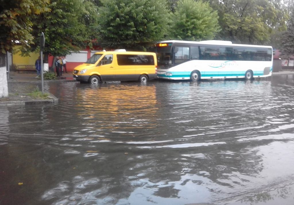 Утром 8 августа 2019 года в Зеленоградске подтопило остановку автобусов*.