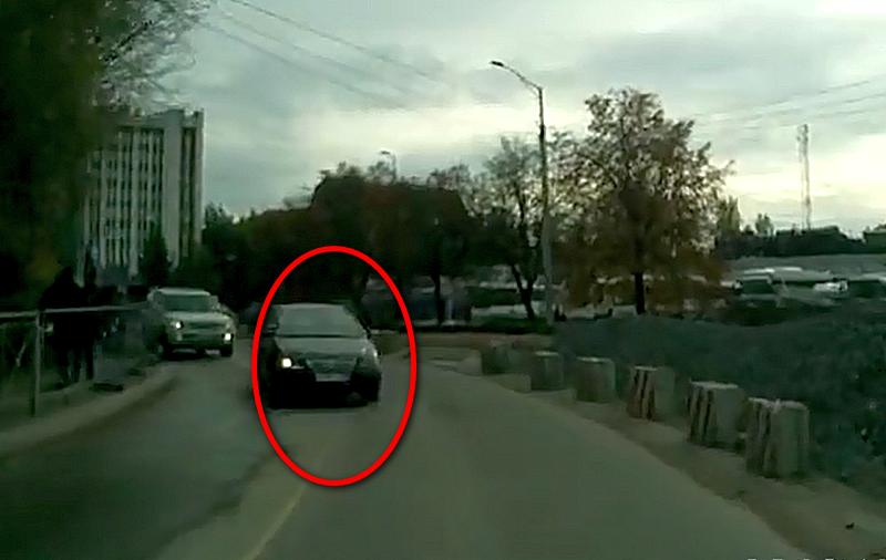 Водителю регистратора пришлось съехать к огороженной бетонными блоками обочине и затормозить, чтобы избежать столкновения.